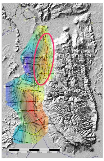 EnerCam’s management team has reviewed several more seismic lines, and they have identified a second anticline in the Central Bokor area. The new Central Bokor Lead, circled in Figure 1 below, like the South Bokor lead, has clear four-way closure and a rough depth of 900-1200 meters.