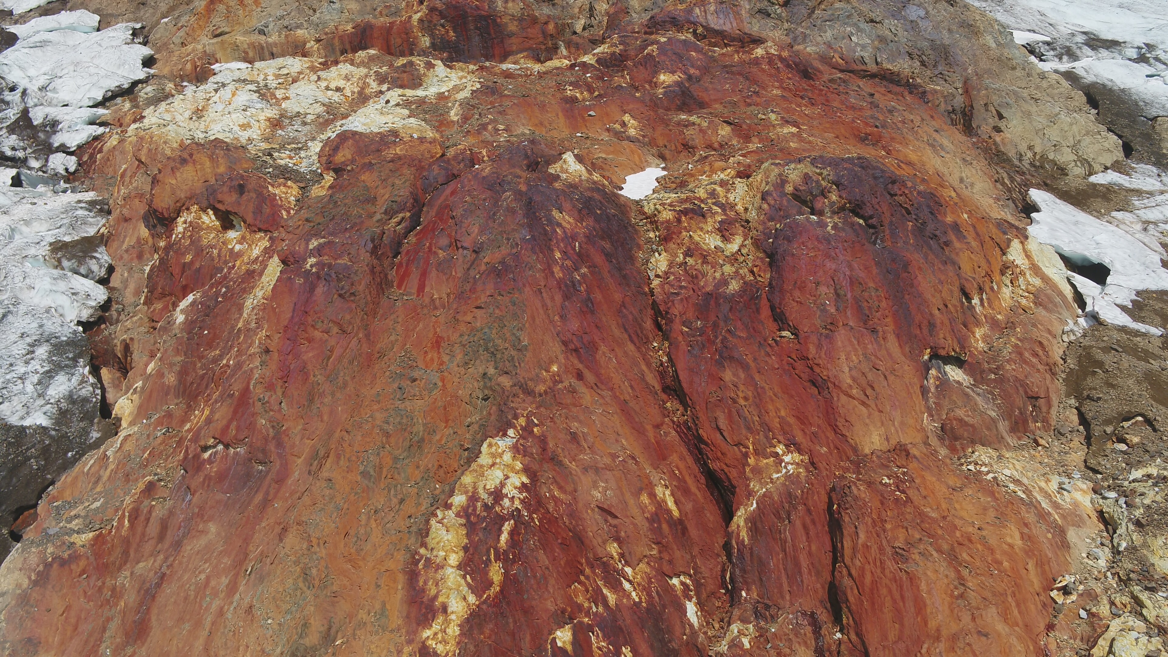 A reconnaissance of areas of glacial meltback has identified two previously unknown gossans in a locale now referred to as “Del Norte West” (Photographs of the zones: http://teuton.com/Fig4Gossan1DNW and http://teuton.com/Fig5Gossan2DNW). Prospecting of a small portion of both gossanous zones has identified widespread pyrite mineralization with local concentrations of chalcopyrite and sphalerite in a silicified hostrock (cf http://teuton.com/Fig6SamplingDNW). It is possible that both gossans are connected beneath an intervening icefield. Samples have been sent for assay and work is continuing in an effort to cover as much of the gossanous region as possible.