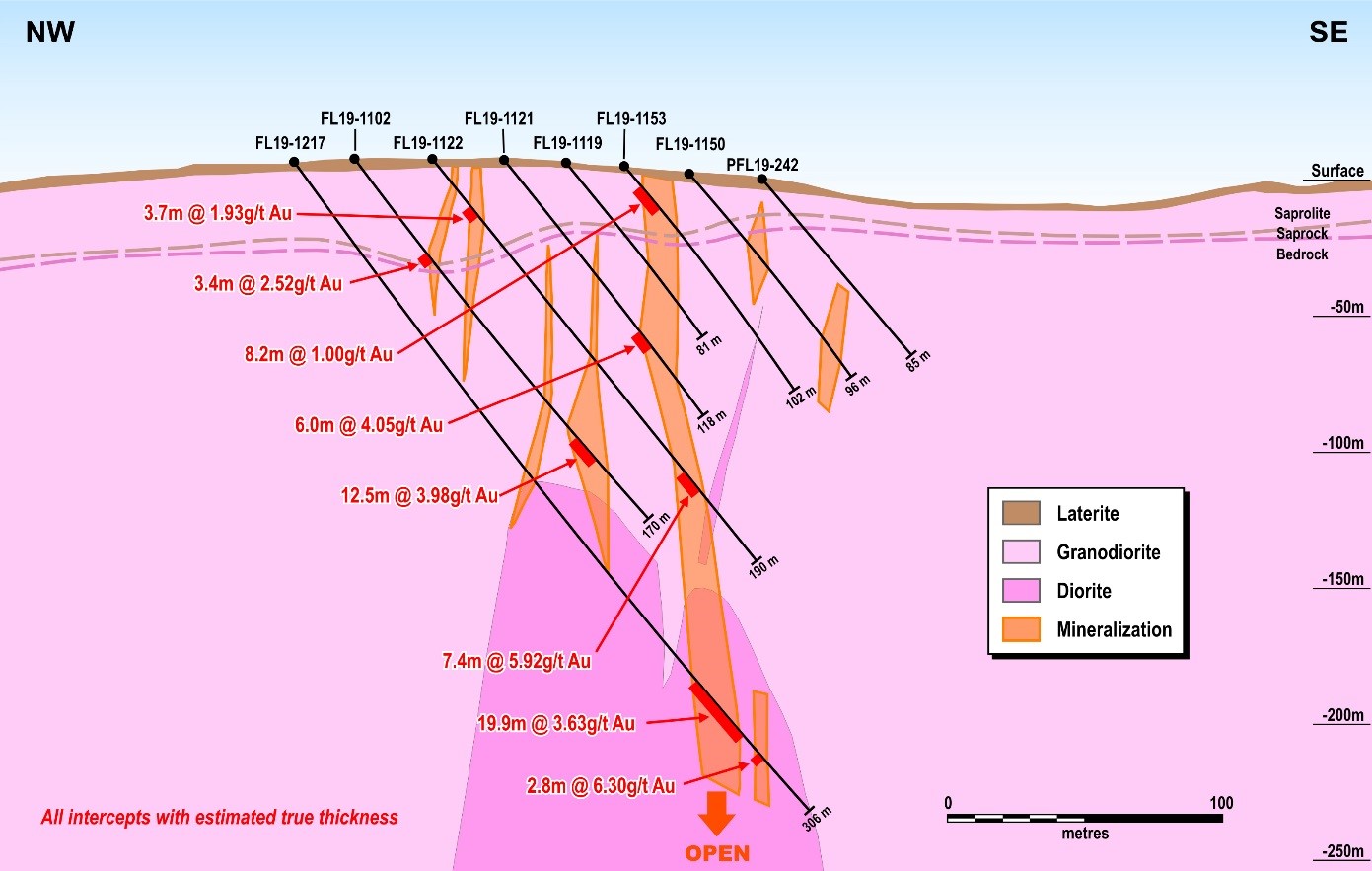 FL19-1012 : 15.9m at 4.18 g/t Au, including: 0.86m at 32.1 g/t Au