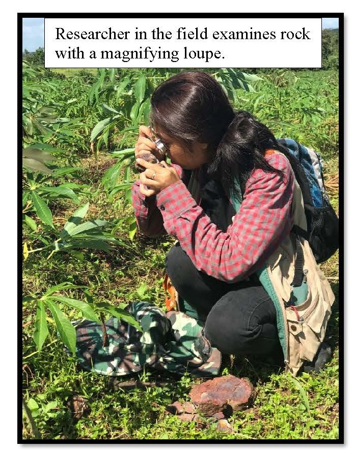 To select fresh and altered samples in Andong Meas’s prospects for petrograph thin section, XRD, and ASD analysis