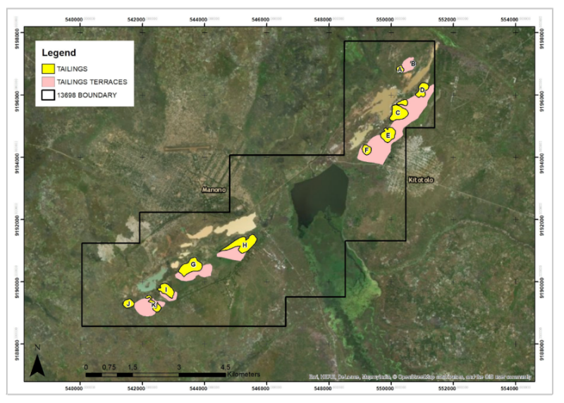 Figure 1: Licence Boundary of PER 13698 and Tailings locations
