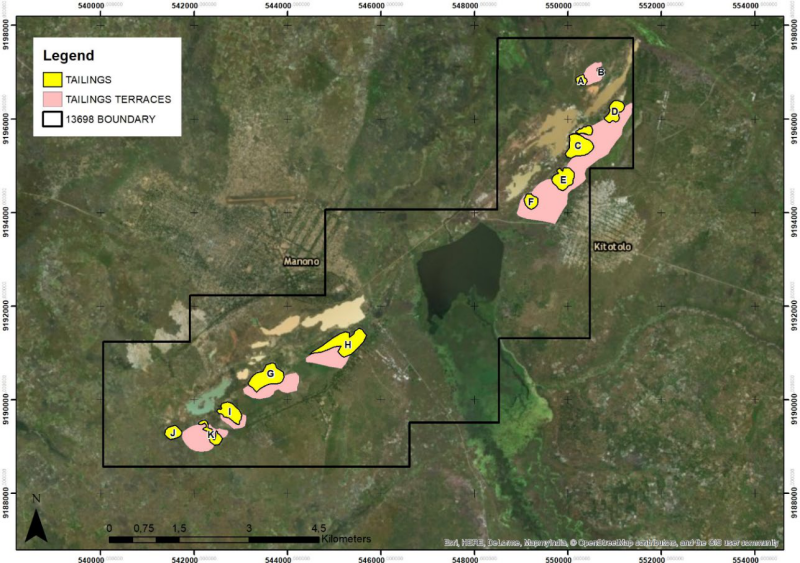 Figure 2: PER13698 Manono-Kitotolo Tailings Dumps A-K