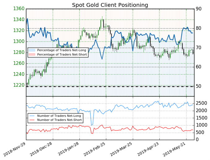 Yet despite the excess bullishness in the market, gold still has a couple of major factors in its favor. One is the aforementioned "fear factor" which will almost certainly continue in the coming weeks as the U.S.-China trade war is nowhere near a resolution. What's more, investors and economists are becoming increasingly worried about the prospect of a trade-related U.S. economic recession by later this year. This built-in fear factor alone should be sufficient to keep gold prices above the recent low of $1,275 (see chart below).