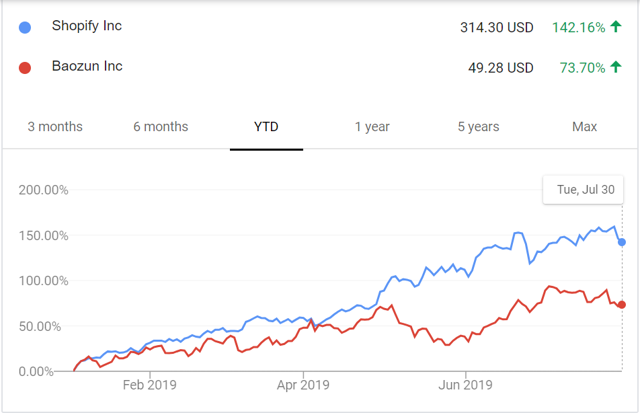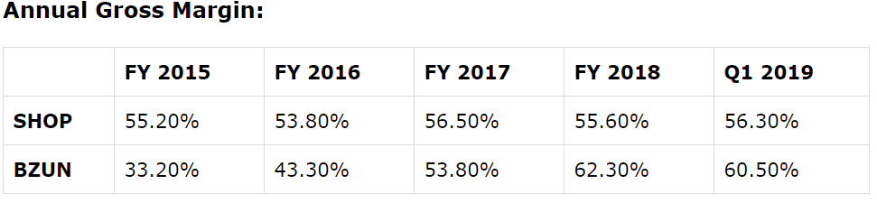 A simple comparison with BZUN's benchmarking company in the U.S., Shopify (NYSE: SHOP), shows the improvement and achievement of BZUN along the way: