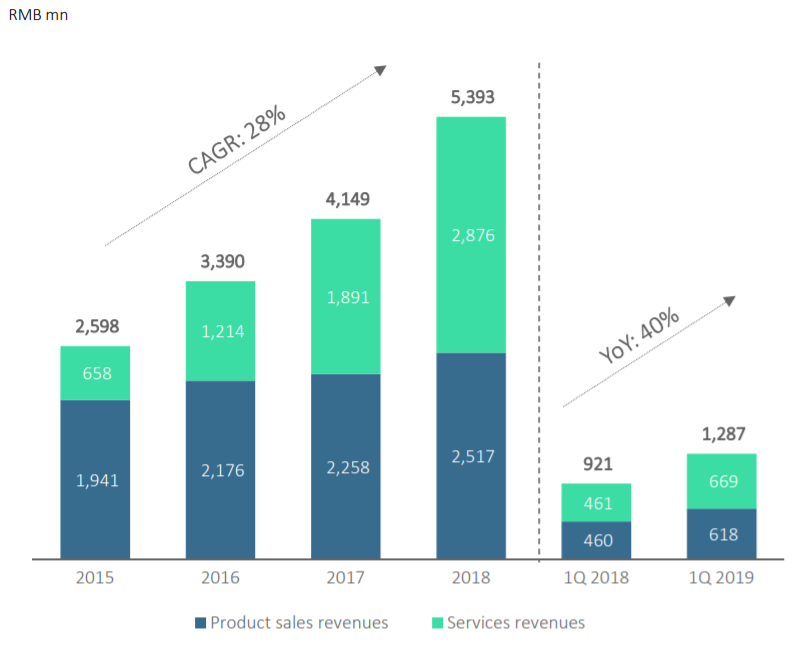 In Q1 2019, BZUN's total net revenues grew by 39.7% YoY to RMB1,286.8M, while services revenue grew by 45% YoY to RMB669.2M. Over the years, we have seen nearly 30% CAGR in net revenue growth: