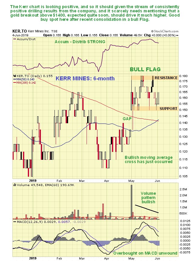 Kerr Mines Inc, KER.TSX, KERMF on OTC, closed at C$0.155, $0.12 on 4th June 2019.