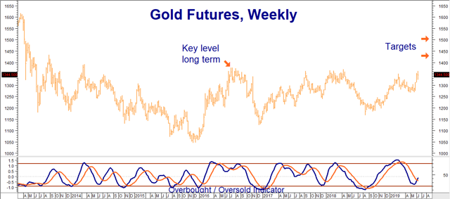 Gold is as oversold on the weekly chart as it is overbought on the daily chart. Gold is making higher highs and higher lows and rallying despite the strong dollar. This indicates that investors' desire to use gold as a hedge against potential global catastrophe is currently stronger than the classic downward pull of a strong dollar. Gold's four-year high at $1,378 per ounce is the new key level to watch. Our upside targets of $1,434 and $1,500 per ounce remain unchanged.