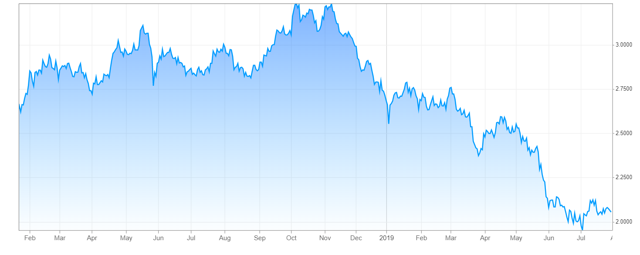 As the subheader says, I believe that the global debt markets are overly saturated as investors are piling in to safely put their money to work. Just looking at the US Treasury 10-year is trading at barely over 2%, a rate not seen since November of 2016.
