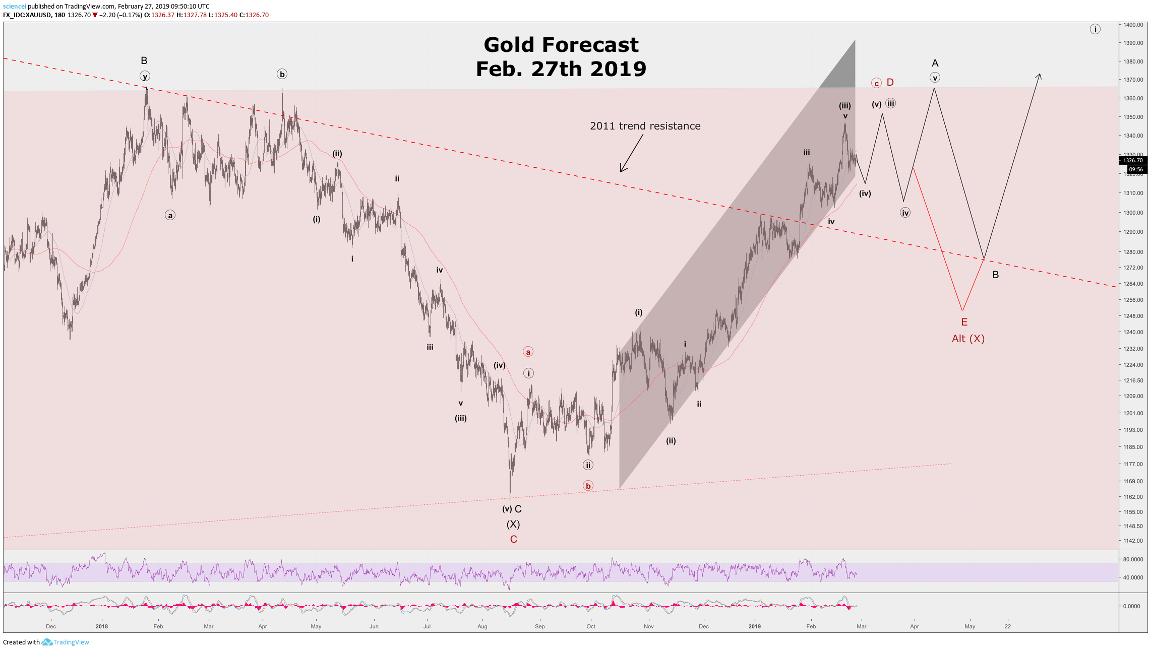 The spike occurred not unexpectedly. Back in February, we warned that gold needs a 5%-7% correction before resuming its upside trend. Our conclusion was to "remain patient during the next few weeks and focus on buying the dip". Price action followed our projected price path exactly. The very first chart below shows our projection from February 27th, 2019. Subsequently, gold corrected 6% from the February high before spiking to the upside recently.