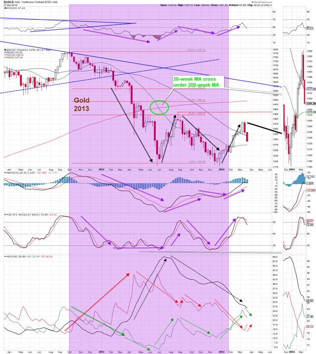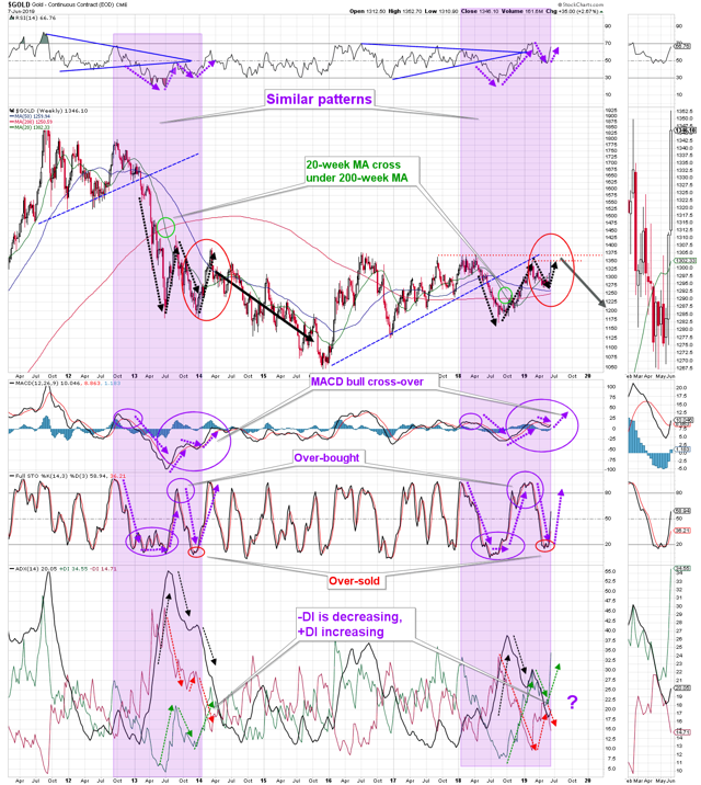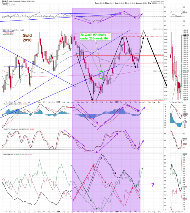 In summary: Gold's fear trade may continue for a few more days, but the technical posture and pattern replication is predicting a turn down in gold prices soon.