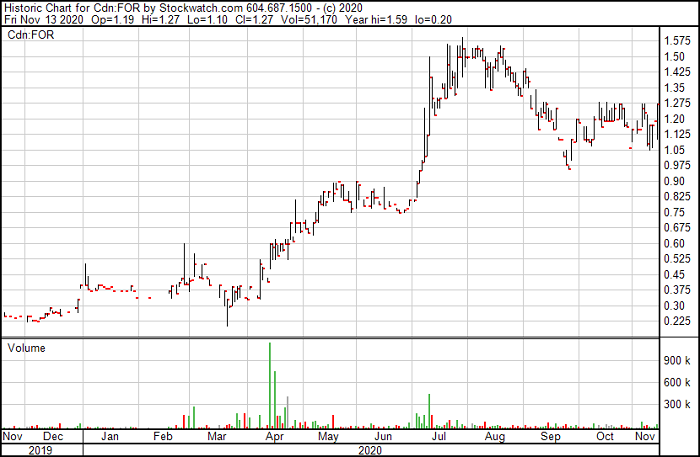 Fortune Bay has a small float with only 38 million share fully diluted. Management and board hold approx. 18% of the stock.