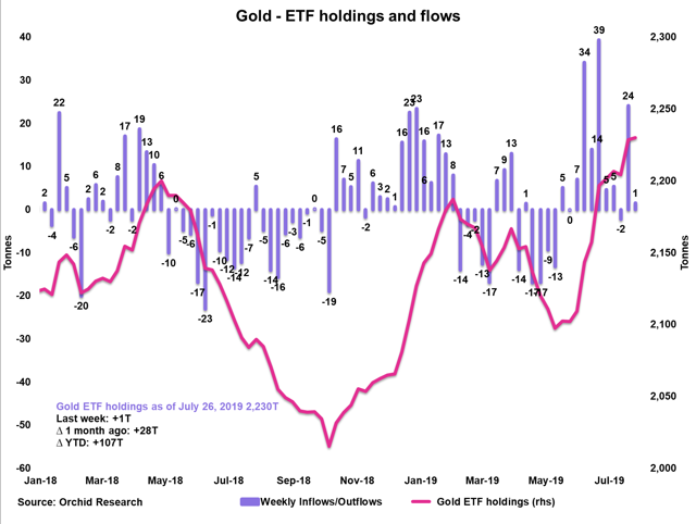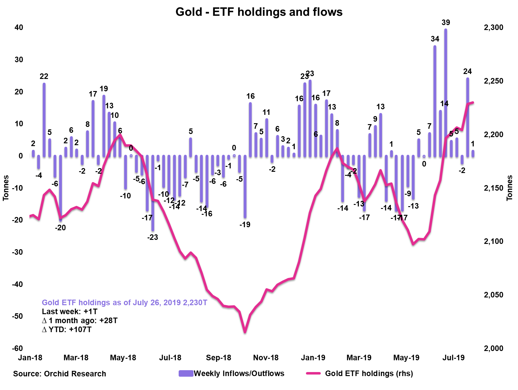 ETF investors were on the sidelines in the week to July 26, after buying 24 tonnes of gold in the prior week.