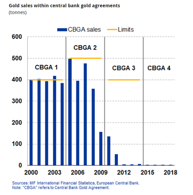 The Central Bank Gold Agreement (CBGA), also known as the Washington Agreement, which was signed by the ECB and 21 other central banks in 1999 in order to coordinate central banks' gold sales to limit turbulence in the gold market, will not be renewed this year and will expire in September 2019. This was broadly expected by the market.