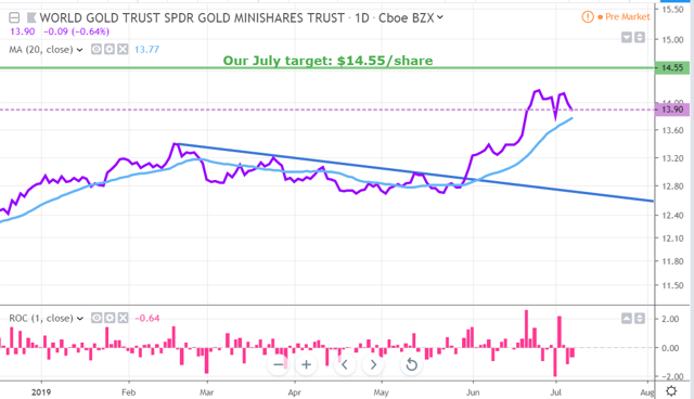 We maintain our GLDM target of $14.55 per share in July, representing an 8% appreciation from its current level.