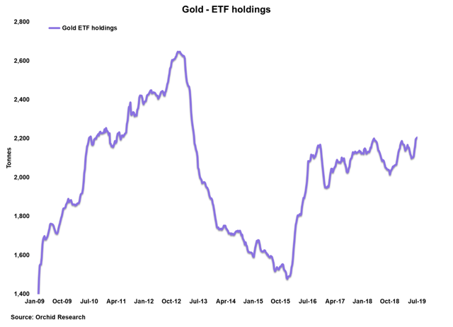 Gold ETF holdings are now at their highest level since May 2013, having increased by roughly 78 tonnes in the year to date.