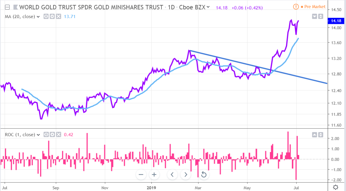 Welcome to Orchid's Gold Weekly report. We discuss gold prices through the lenses of the World Gold Shares SPDR Gold Minishares Trust ETF (GLDM) because we think that is the best pure-play ETF to assert exposure to spot gold prices.