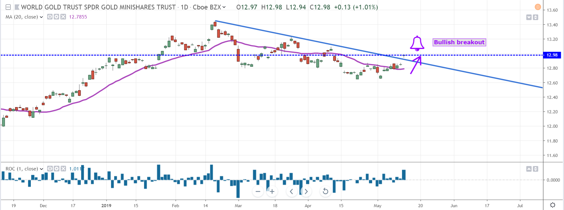 Given the mixed impact of the US-China trade/tech spat on gold prices and the deterioration in the technical picture, we have turned more cautious on GLDM. Accordingly, we revised lower our GLDM forecast to $13/share by month-end from $13.45/share previously.