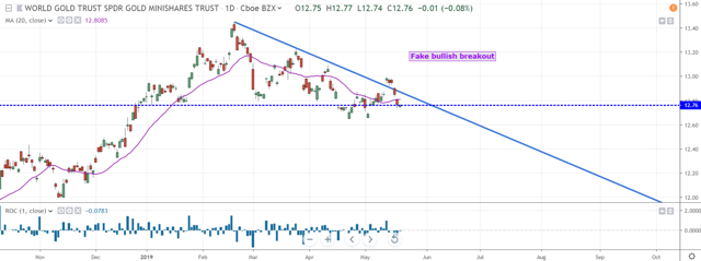 We revise our month-end forecast for GLDM from $13.45/share to $13.00/share.