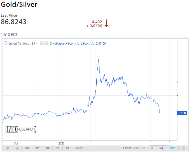 Earlier on Monday, we heard Robin Griffiths from the T3 Report make the technical case for gold. That followed our INK market report that pointed to the break down of the gold silver ratio last week. The trend is continuing which reinforces our view that G-economy forces are building. Global policy makers seem to be throwing the kitchen sink at the challenge of generating more inflation. Nevertheless, I continue to hear US dollar and bond bulls warn that this is all a big head fake.