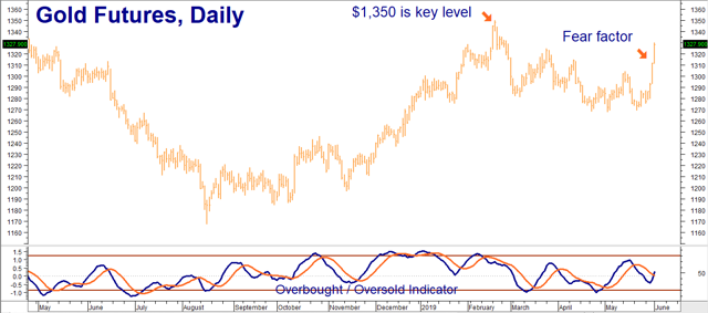 Gold's last swing high at $1,350 per ounce (see chart below) represents the next level of resistance. Gold could be "off to the races" should the bulls take this level out in any significant way.