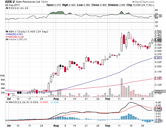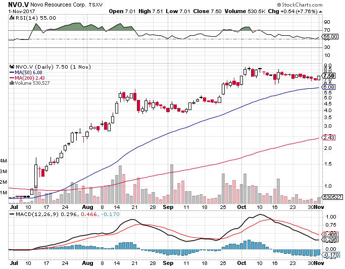 Novo was the only gold discovery stock that was getting a substantial amount of attention from most investors - it may be the only one of these stock gain stories that you have heard of. But in fact it was not alone in the summer and fall of 2017.