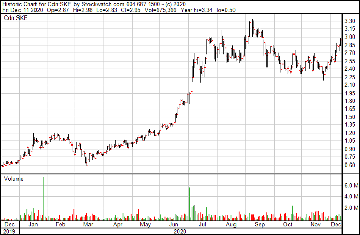 Some of the stocks we followed and wrote about did exceptionally well. Our favorite play this year was and still is Skeena Resources TSX-SKE. Skeena is drilling in the Golden Triangle in northern BC and because of the exceptional drill results that keep coming in the company is going full tilt with upwards of 12 rigs. Early in the year you could have bought the stock in the 50 cent range. Infact after the March crash the stock fell back to the 50's but has since rallied to $3.00 giving long investors a 600% return. In my opinion there is still a whole lot of upside here as this resource just keeps getting bigger and grades keep getting richer all the time.