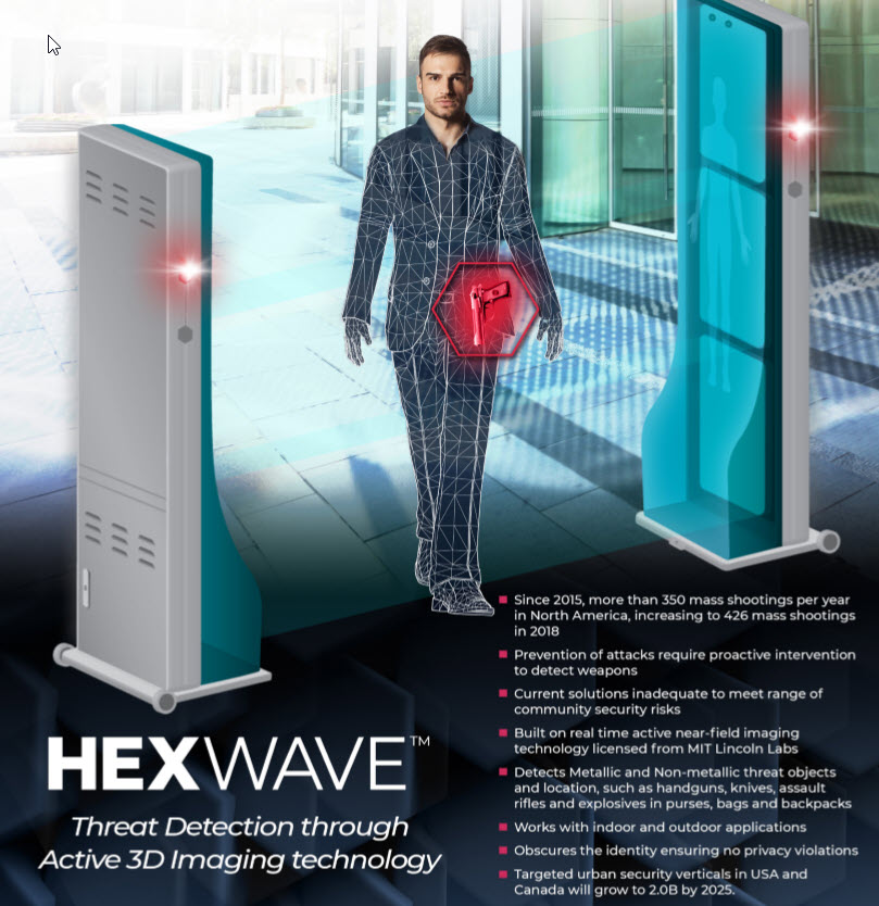 In 2017, MIT successfully testedthe new system at Boston’s Transit Authority and filed patents. After a six-mothprocess of vetting companies interested in the system, MIT chose LibertyDefense (which was created a year and a half ago) to commercialise this uniquetechnology (called Hexwave) and gave Liberty the global licensing rights. MITis actively working with Liberty to bring Hexwave to the market by Q4, 2020.