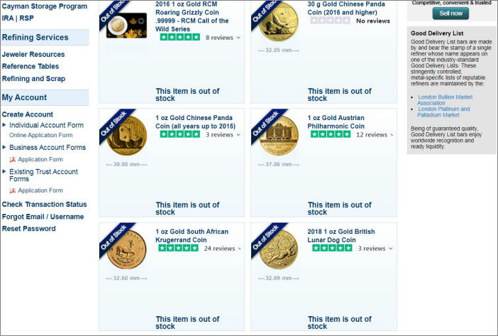 This sell off in metals dropped the gold price around $200 an ounce and pushed silver prices down to 11 year lows. Only problem is, these prices were all in the paper market futures market where little if any physical metal trades hands. However, there were refiners eager to take delivery at these low prices and it took hardly any time at all to see the physical inventory dissappear almost over night. All a person needs to do is go to websites like Kitco.com and go to their bullion store to see "OUT OF STOCK" notices on most of the gold and silver bullion products like you see in the image below. When you do find physical metal for sale you will find gold priced about $200 over spot and silver about $6 over spot. This shows the fallacy in the metals markets pricing and one of the reasons gold bugs have been telling people to invest in physical metal only. There's an old saying that says, "If you can't hold it, you don't own it." Now those who wish to buy physical metal are finding that there could be wait times of up to several weeks for delivery.