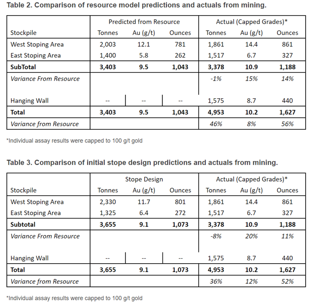 One of the risks to underground mining is that the feasibility studies can sometimes miss the mark on how execution looks, like Pretium Resources (PVG) found out in its first year of production. Despite projections for an average mined grade of over 15 grams per tonne gold for Pretium, thus far, we've seen mined gold come in at less than 12 grams per tonne gold or 20% below the average. The encouraging news for Pure Gold Mining is that test-mining in Q4 2018 came in well above expectations. As discussed in the November 28th, 2018, news release, actual grades were between 10% and 50% higher than what was predicted in the resource based on different areas mines. For example, in the east and west stoping area stockpiles, the expected resource grade was 9.5 grams per tonne gold yielding 1,043 ounces, and instead, the company managed to mine 1,188 ounces at a 15% higher grade of 10.9 grams per tonne gold. While this doesn't guarantee that the whole mine is going to look the same way and over-deliver if it goes into production, it is a positive sign for the time being that test mining exceeded initial expectations.