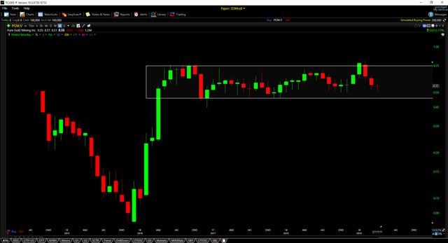 In summary, the daily and weekly charts remain under pressure for Pure Gold Mining, and the monthly chart is trading in one big base. The one silver lining is that the stock is beginning to get oversold at these levels, and critical support sits only a few percent below current prices. As long as the bulls can defend this level and buying shows up, there's a potential the lows might be in. The other good news is that the current valuation of just over $100 million US gives the company an enterprise value of less than half its total NPV, so it is indeed not overpriced at current levels and is now closer to fair valuation.