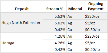 Sandstorm holds several streams in the Hugo North Extension (Lifts 1 & 2) and also in the Heruga deposit.
