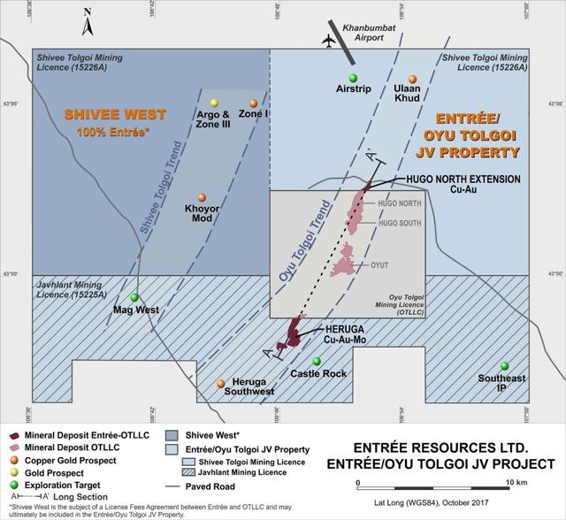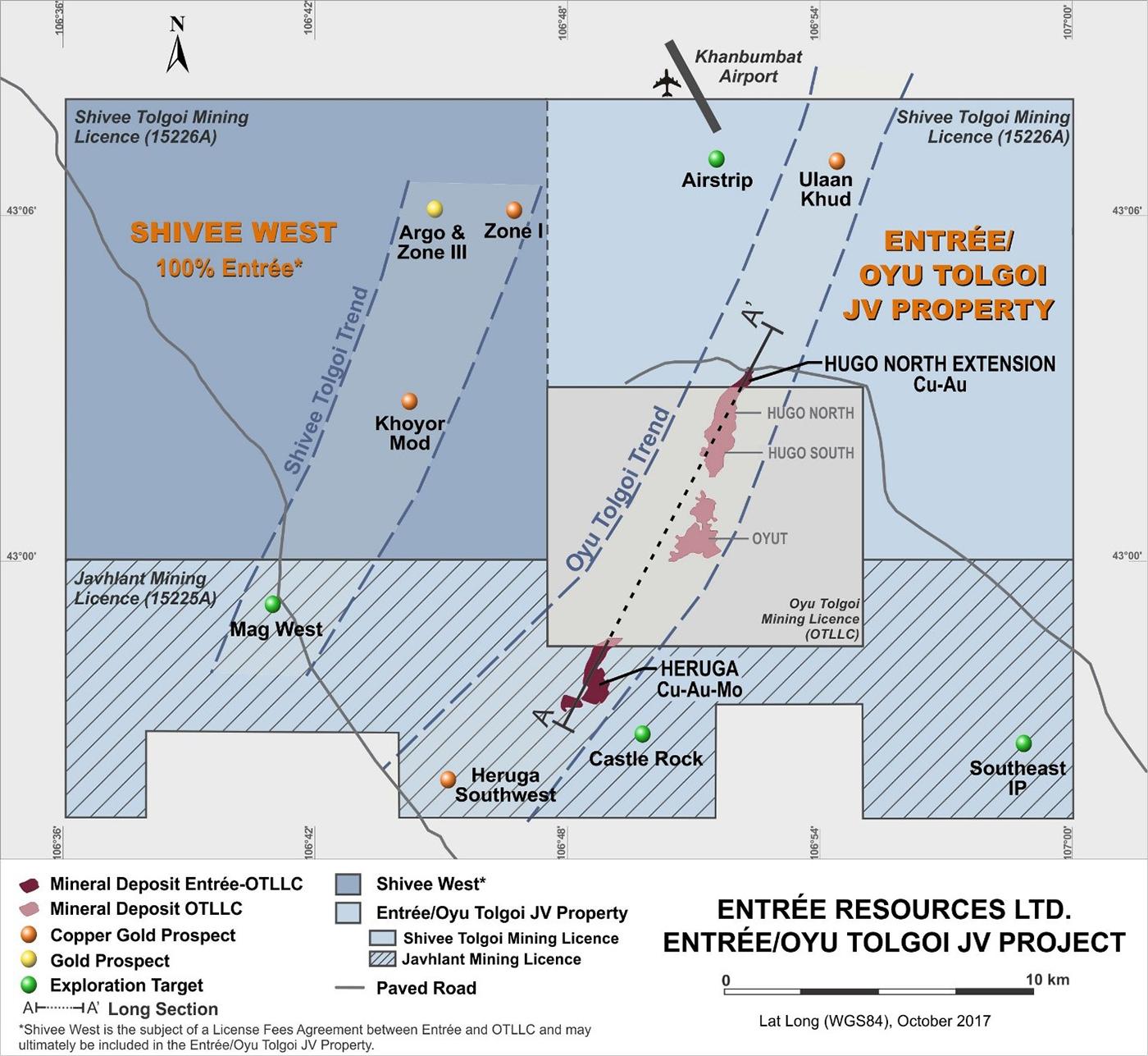 Entr?(C)e's main asset is its interest in the Entr?(C)e/Oyu Tolgoi LLC partnership. The Entr?(C)e/Oyu Tolgoi JV Property covers 39,807 hectares and includes portions of the following Oyu Tolgoi project deposits: