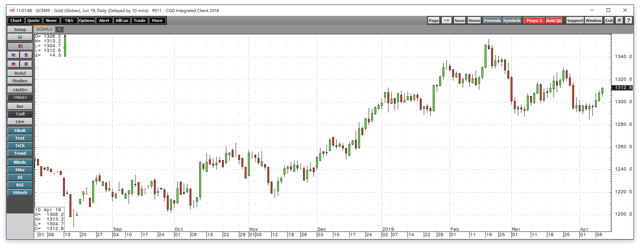 After trading to a low at $1284.90 on the active month June COMEX futures contract on April 4, the price of the yellow metal rose to over the $1313.20 level on April 10 at last glance.