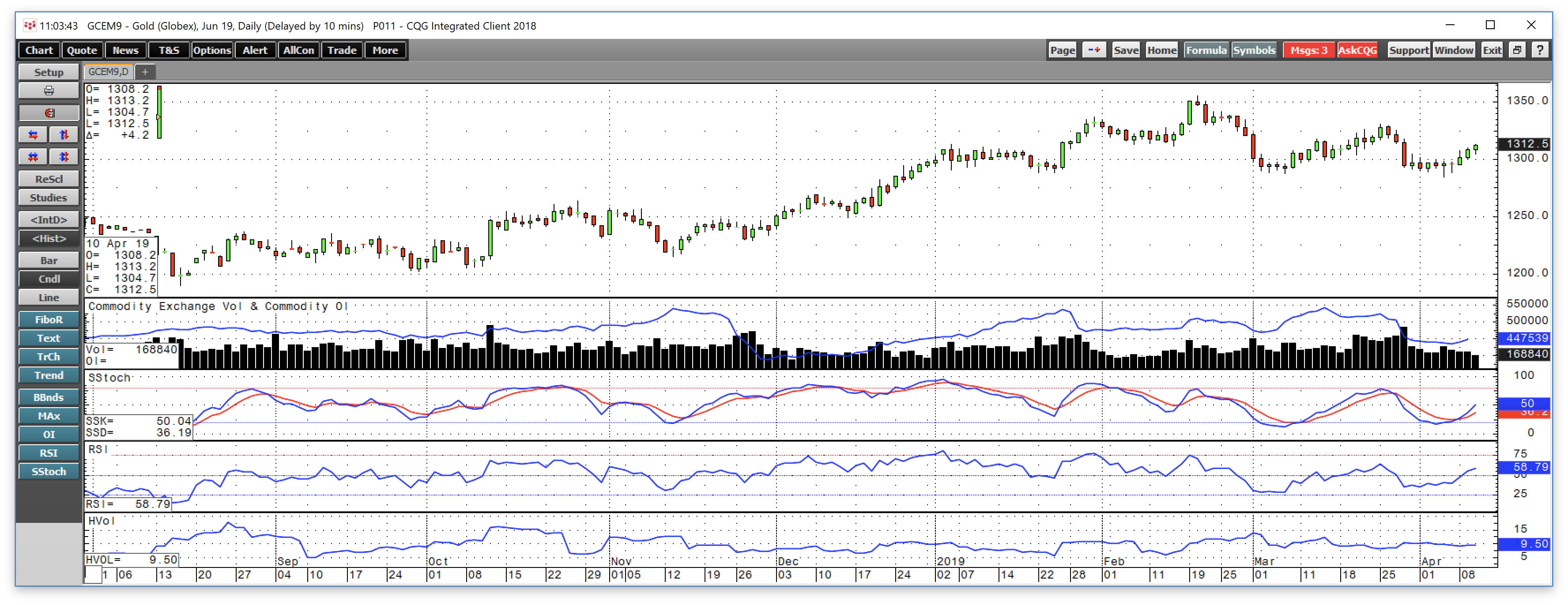 The price of June gold futures moved from $1284.90 on April 4 to a high at $1313.20 on April 10, a rise of 2.20%.