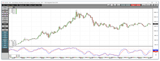 The monthly chart of COMEX gold futures shows that the recent correction was only a short-term blip in a bullish trend that has been in place since late 2015. Gold has not traded below $1000 per ounce in a decade, and the technical and fundamental state of the market is pointing to a move to $2000 rather than a return to $1000 over the coming months and years.