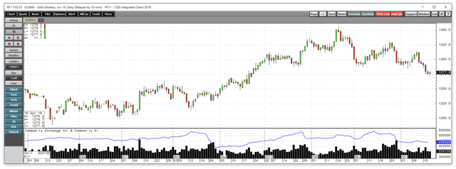As the daily chart of nearby COMEX gold futures shows, the price of the yellow metal declined for five consecutive sessions and reached a low on April 18 at $1273 before closing last Thursday with a marginal gain before the Easter and Passover holiday weekend. While gold put in lower lows, the majority of the move in silver occurred on April 11 which was the day that gold plunged below the $1300 level.