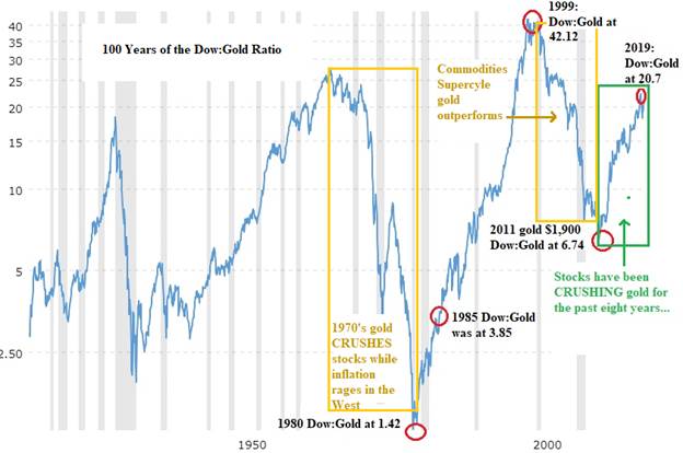 The first-ever market commentary I can recall issuing was a three-page update on a few of the junior exploration issues I was following, and the year was 1985. Gold was trading in the $280-320 range and the Dow Jones Industrials had moved into a full-blown bull market after the 1981-1982 bear, and were trading at 3.85 times the price of gold or around $1,155.
