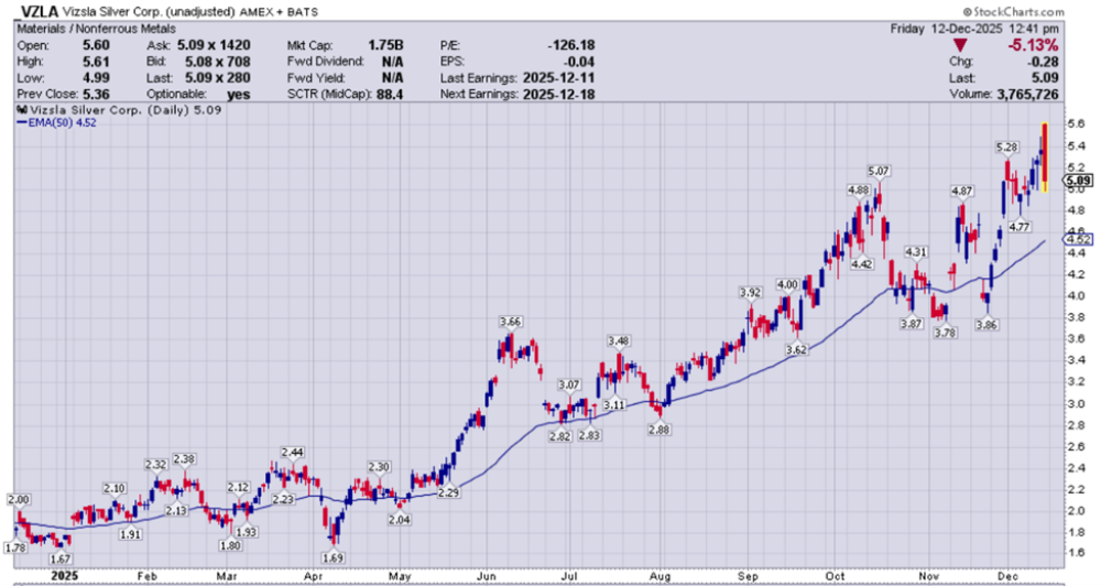 As a result, my personal investing thesis is that Vizsla Silver could still double or triple from here, even if metals prices just hang somewhere in the neighborhood of where they've been here in Q4.