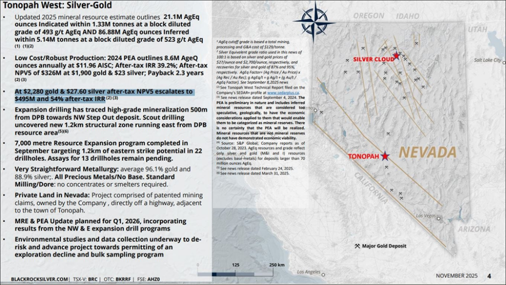There is a 2024 Preliminary Economic Assessment (PEA) in place that demonstrated that at US$2,280 gold and US$27.60 silver after-tax NPV5% escalates to US$495 million and 54% after-tax IRR.