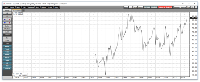 In 1990, like in 2019, gold performed like a star compared to silver which acted like a financial dog, not to insult our best and most loyal friends. The silver/gold ratio made a new high on May 13 as silver refuses to keep pace with the price action in the gold market.