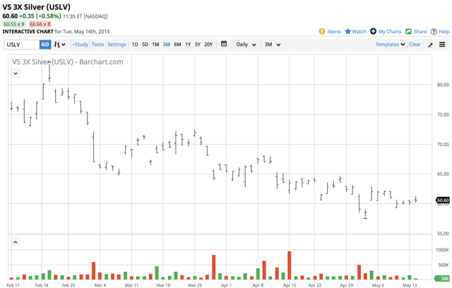 USLV turbocharged silver volatility if a correction is on the horizon.