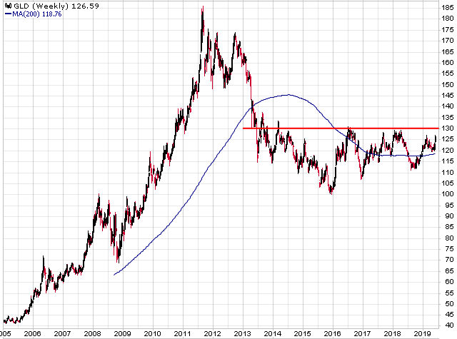 There have been instances in the past when gold and general equities rallied in tandem, but there are usually explanations for this synchronicity. For instance, from the early to mid-2000s, the S&P put on a stellar performance, as did gold. The key difference was the run in the S&P was a bear market rally and was occurring after the index lost more than 50% of its value. It was simply getting back to even while gold was up over 200%. Both GLD and the S&P are higher this year as well, but again, the S&P is just getting back to even after its late 2018 sell-off.