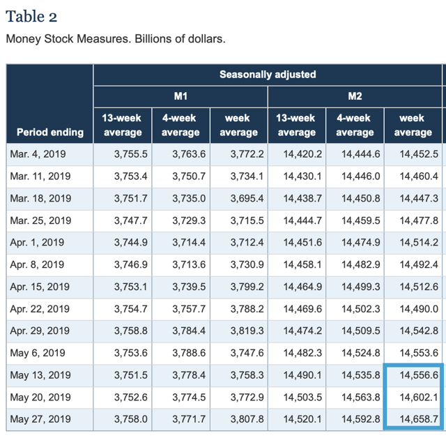 The last two weekly money stock measures released by the Federal Reserve showed a mammoth amount of money supply growth. There was more than a $100 billion increase in M2 from early May to late May. This is far from typical. I believe this is the main driver of the price of gold over the last few weeks. It's worth keeping a watch on the Fed's money stock releases over the next several weeks to see if this growth in M2 moderates at all.